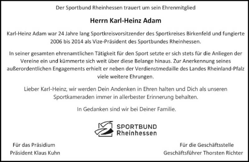 Hier finden Sie alle Traueranzeigen aus der Zeitung, die bisher für Karl-Heinz Adam erschienen sind. Weitere Traueranzeigen, die in der Zeitung erscheinen, werden hier ebenfalls aufgelistet