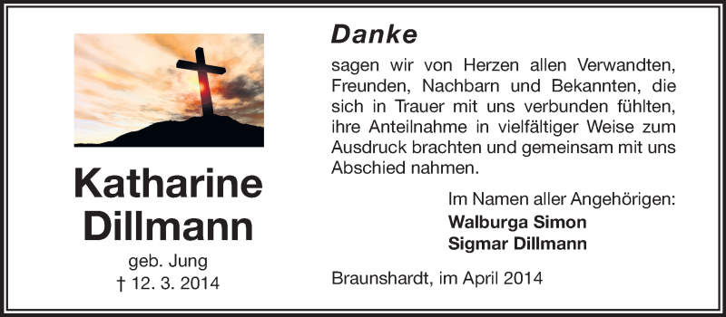 Hier finden Sie alle Traueranzeigen aus der Zeitung, die bisher für Katharina Dillmann erschienen sind. Weitere Traueranzeigen, die in der Zeitung erscheinen, werden hier ebenfalls aufgelistet
