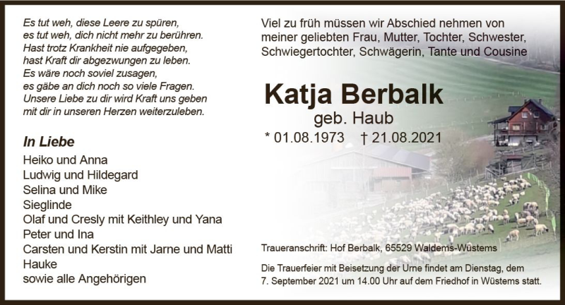 Hier finden Sie alle Traueranzeigen aus der Zeitung, die bisher für Katja Berbalk erschienen sind. Weitere Traueranzeigen, die in der Zeitung erscheinen, werden hier ebenfalls aufgelistet
