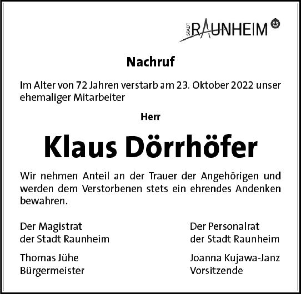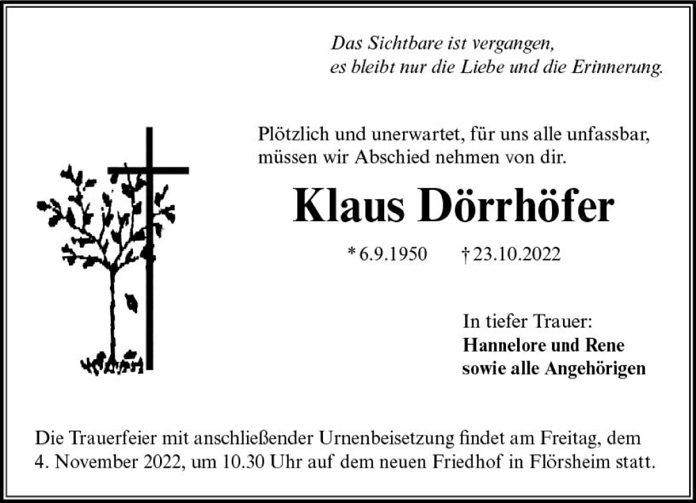 Hier finden Sie alle Traueranzeigen aus der Zeitung, die bisher für Klaus Dörrhöfer erschienen sind. Weitere Traueranzeigen, die in der Zeitung erscheinen, werden hier ebenfalls aufgelistet