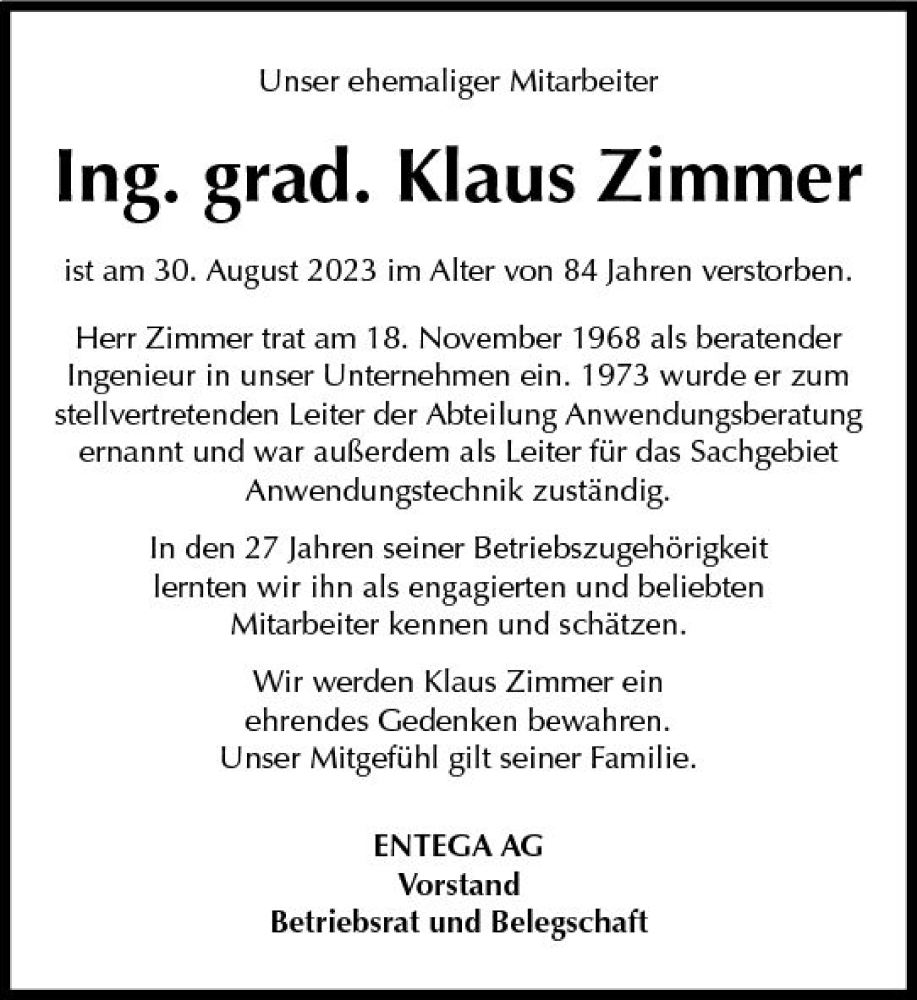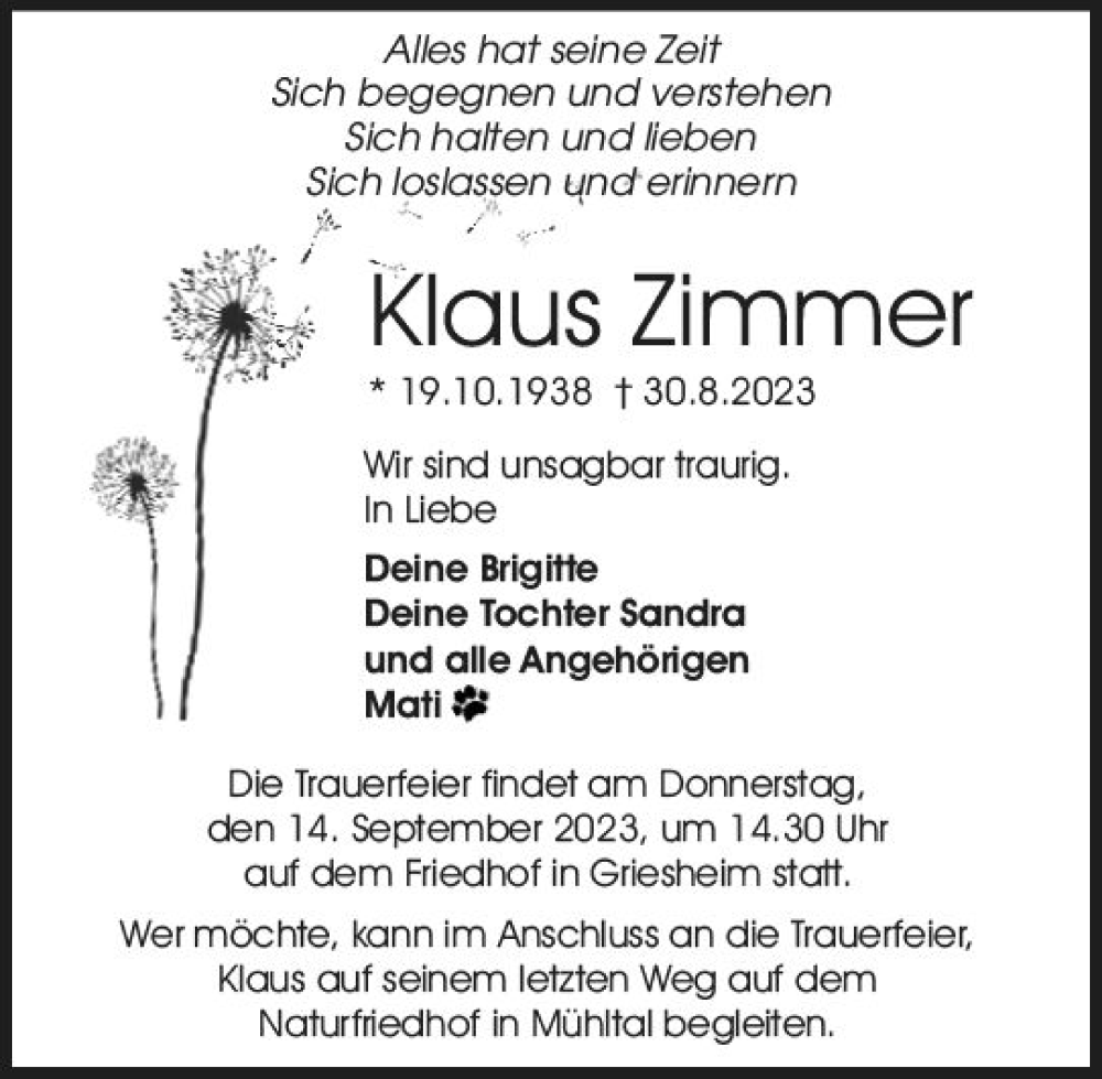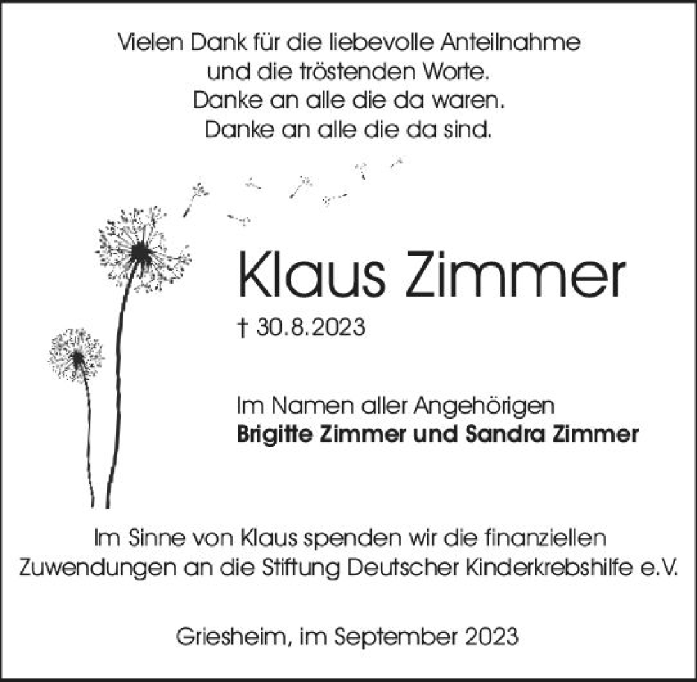 Hier finden Sie alle Traueranzeigen aus der Zeitung, die bisher für Klaus Zimmer erschienen sind. Weitere Traueranzeigen, die in der Zeitung erscheinen, werden hier ebenfalls aufgelistet