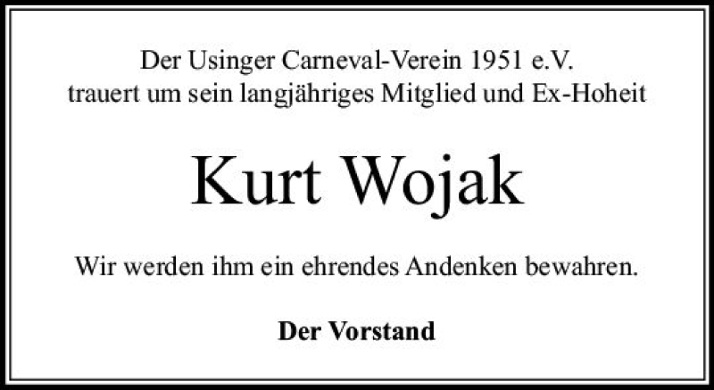 Hier finden Sie alle Traueranzeigen aus der Zeitung, die bisher für Kurt Wojak erschienen sind. Weitere Traueranzeigen, die in der Zeitung erscheinen, werden hier ebenfalls aufgelistet
