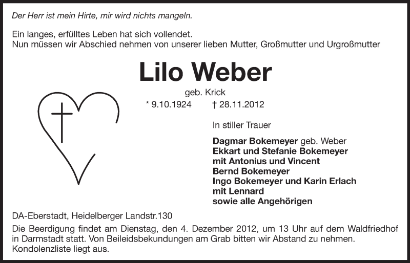 Hier finden Sie alle Traueranzeigen aus der Zeitung, die bisher für Lilo Weber erschienen sind. Weitere Traueranzeigen, die in der Zeitung erscheinen, werden hier ebenfalls aufgelistet