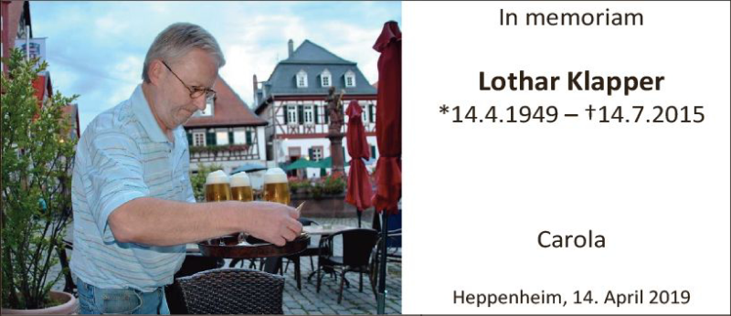 Hier finden Sie alle Traueranzeigen aus der Zeitung, die bisher für Lothar Klapper erschienen sind. Weitere Traueranzeigen, die in der Zeitung erscheinen, werden hier ebenfalls aufgelistet