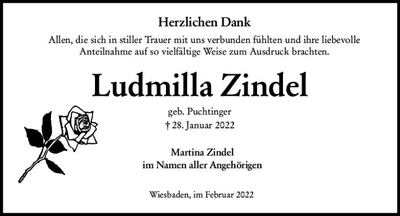 Hier finden Sie alle Traueranzeigen aus der Zeitung, die bisher für Ludmilla Zindel erschienen sind. Weitere Traueranzeigen, die in der Zeitung erscheinen, werden hier ebenfalls aufgelistet