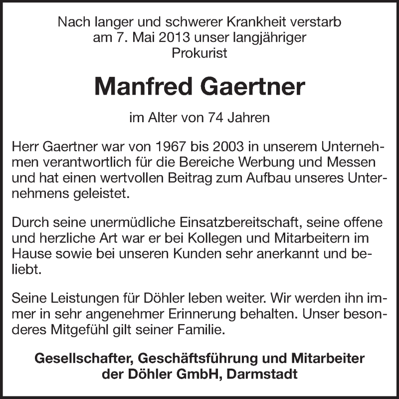 Hier finden Sie alle Traueranzeigen aus der Zeitung, die bisher für Manfred Gaertner erschienen sind. Weitere Traueranzeigen, die in der Zeitung erscheinen, werden hier ebenfalls aufgelistet