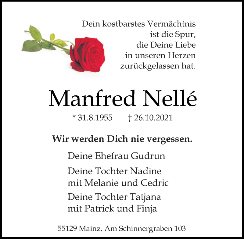 Hier finden Sie alle Traueranzeigen aus der Zeitung, die bisher für Manfred Nelle erschienen sind. Weitere Traueranzeigen, die in der Zeitung erscheinen, werden hier ebenfalls aufgelistet