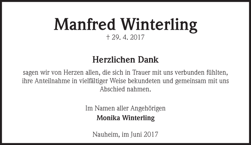 Hier finden Sie alle Traueranzeigen aus der Zeitung, die bisher für Manfred Winterling erschienen sind. Weitere Traueranzeigen, die in der Zeitung erscheinen, werden hier ebenfalls aufgelistet