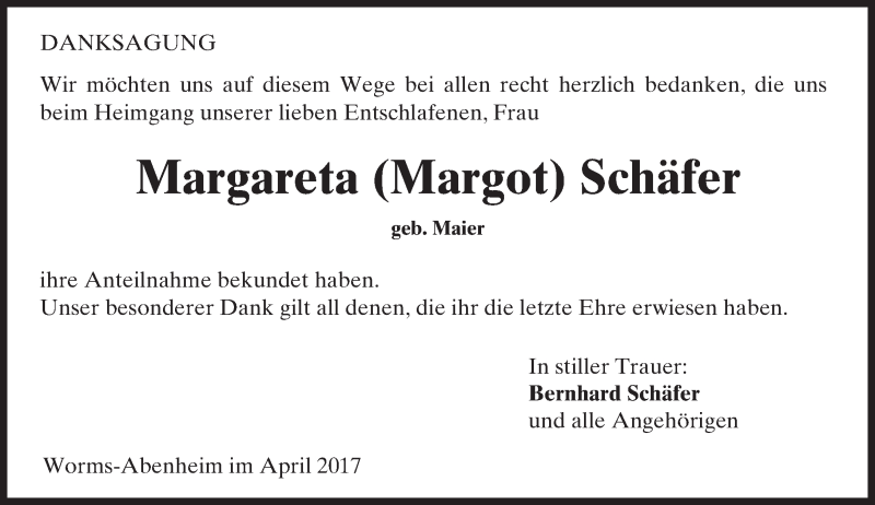 Hier finden Sie alle Traueranzeigen aus der Zeitung, die bisher für Margareta Schäfer erschienen sind. Weitere Traueranzeigen, die in der Zeitung erscheinen, werden hier ebenfalls aufgelistet