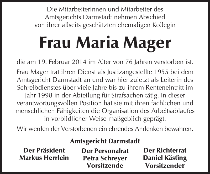 Hier finden Sie alle Traueranzeigen aus der Zeitung, die bisher für Maria Mager erschienen sind. Weitere Traueranzeigen, die in der Zeitung erscheinen, werden hier ebenfalls aufgelistet