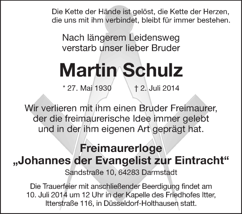 Hier finden Sie alle Traueranzeigen aus der Zeitung, die bisher für Martin Schulz erschienen sind. Weitere Traueranzeigen, die in der Zeitung erscheinen, werden hier ebenfalls aufgelistet