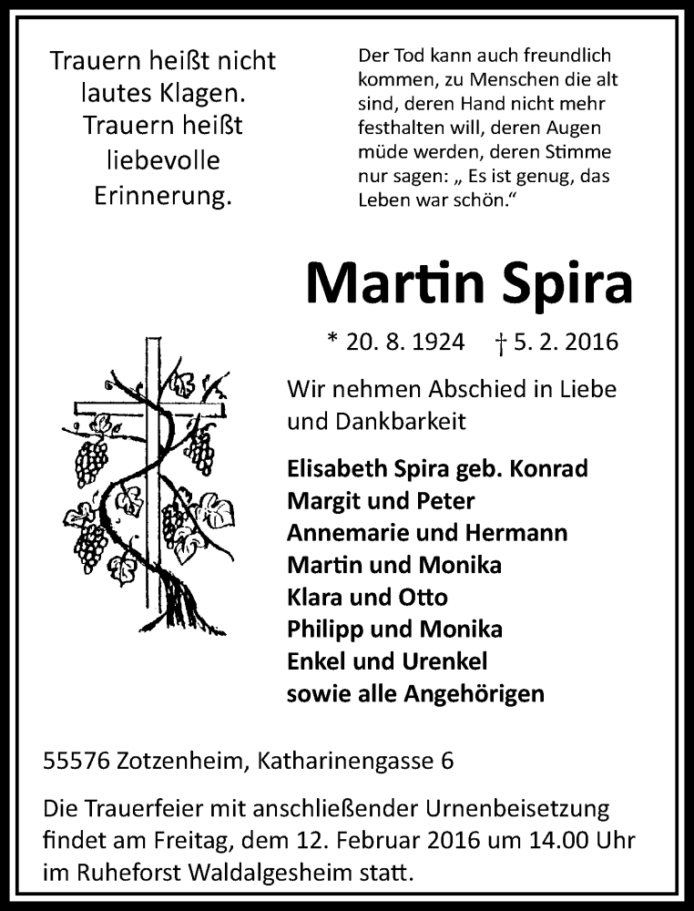 Hier finden Sie alle Traueranzeigen aus der Zeitung, die bisher für Martin Spira erschienen sind. Weitere Traueranzeigen, die in der Zeitung erscheinen, werden hier ebenfalls aufgelistet