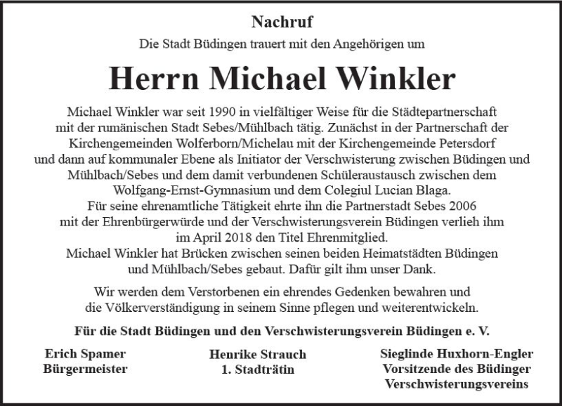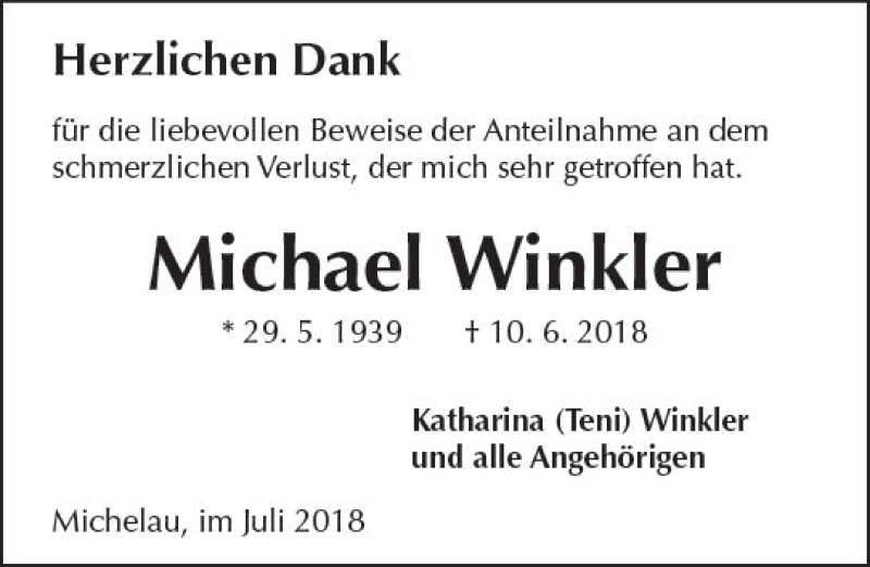 Hier finden Sie alle Traueranzeigen aus der Zeitung, die bisher für Michael Winkler erschienen sind. Weitere Traueranzeigen, die in der Zeitung erscheinen, werden hier ebenfalls aufgelistet