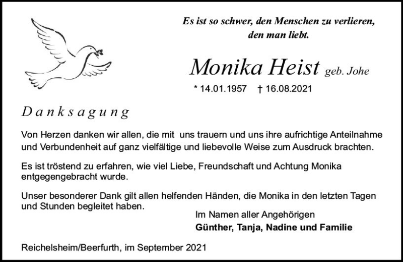 Hier finden Sie alle Traueranzeigen aus der Zeitung, die bisher für Monika Heist erschienen sind. Weitere Traueranzeigen, die in der Zeitung erscheinen, werden hier ebenfalls aufgelistet