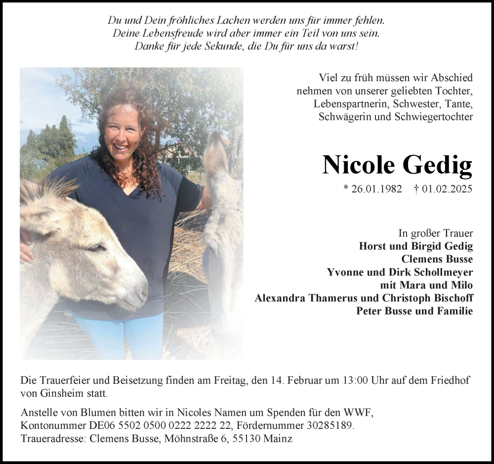 Hier finden Sie alle Traueranzeigen aus der Zeitung, die bisher für Nicole Gedig erschienen sind. Weitere Traueranzeigen, die in der Zeitung erscheinen, werden hier ebenfalls aufgelistet