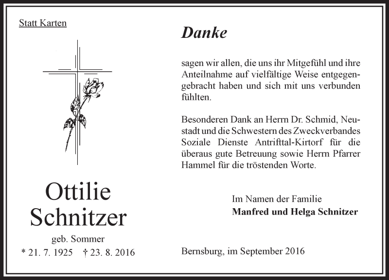 Hier finden Sie alle Traueranzeigen aus der Zeitung, die bisher für Ottilie Schnitzer erschienen sind. Weitere Traueranzeigen, die in der Zeitung erscheinen, werden hier ebenfalls aufgelistet
