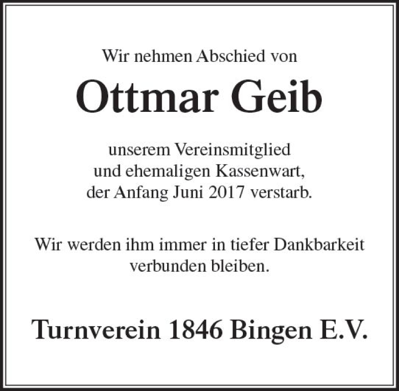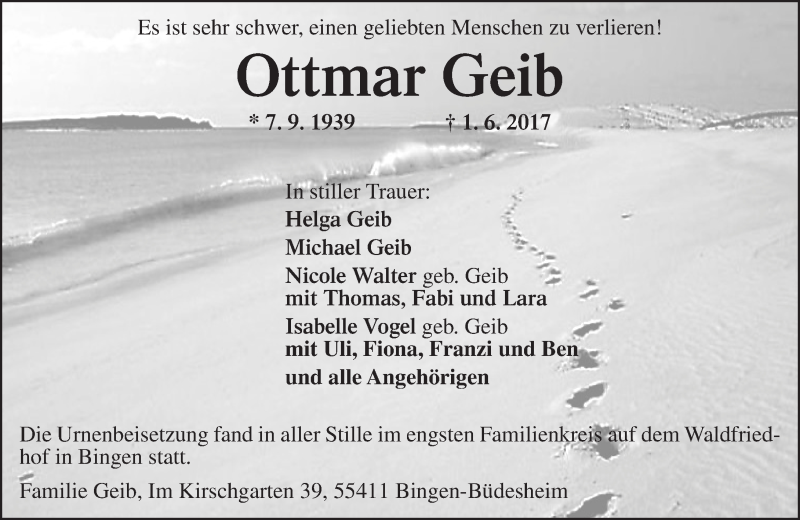 Hier finden Sie alle Traueranzeigen aus der Zeitung, die bisher für Ottmar Geib erschienen sind. Weitere Traueranzeigen, die in der Zeitung erscheinen, werden hier ebenfalls aufgelistet