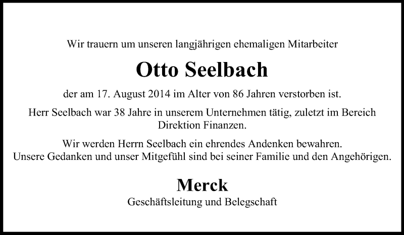 Hier finden Sie alle Traueranzeigen aus der Zeitung, die bisher für Otto Seelbach erschienen sind. Weitere Traueranzeigen, die in der Zeitung erscheinen, werden hier ebenfalls aufgelistet