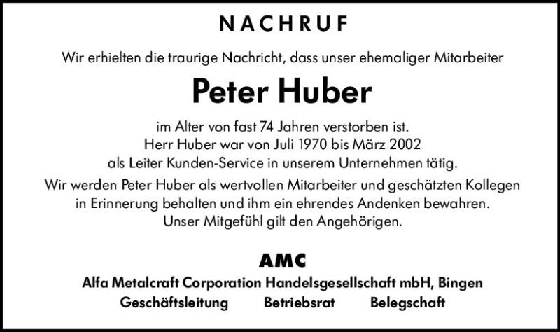 Hier finden Sie alle Traueranzeigen aus der Zeitung, die bisher für Peter Huber erschienen sind. Weitere Traueranzeigen, die in der Zeitung erscheinen, werden hier ebenfalls aufgelistet