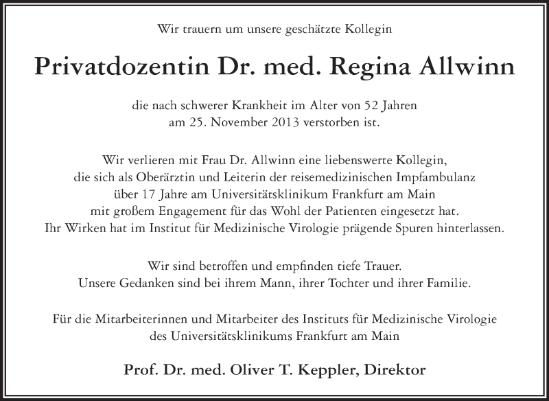 Hier finden Sie alle Traueranzeigen aus der Zeitung, die bisher für Regina Allwinn erschienen sind. Weitere Traueranzeigen, die in der Zeitung erscheinen, werden hier ebenfalls aufgelistet