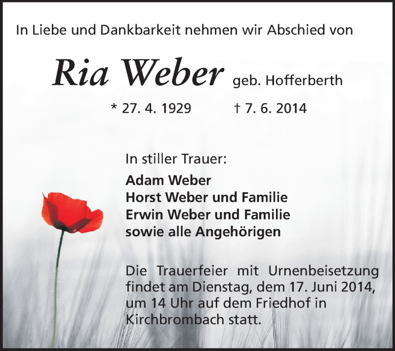 Hier finden Sie alle Traueranzeigen aus der Zeitung, die bisher für Riar Webe erschienen sind. Weitere Traueranzeigen, die in der Zeitung erscheinen, werden hier ebenfalls aufgelistet