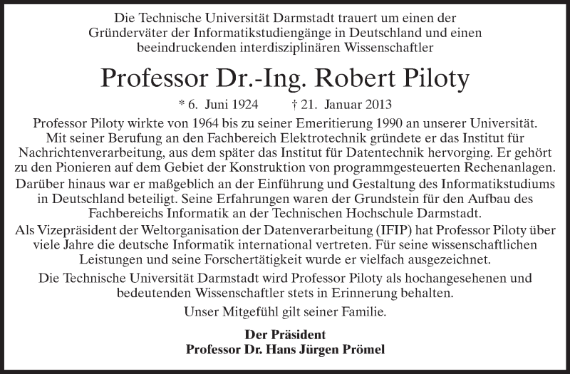 Hier finden Sie alle Traueranzeigen aus der Zeitung, die bisher für Robert Piloty erschienen sind. Weitere Traueranzeigen, die in der Zeitung erscheinen, werden hier ebenfalls aufgelistet