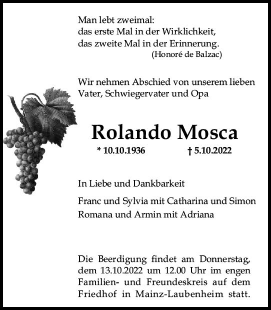 Hier finden Sie alle Traueranzeigen aus der Zeitung, die bisher für Rolando Mosca erschienen sind. Weitere Traueranzeigen, die in der Zeitung erscheinen, werden hier ebenfalls aufgelistet