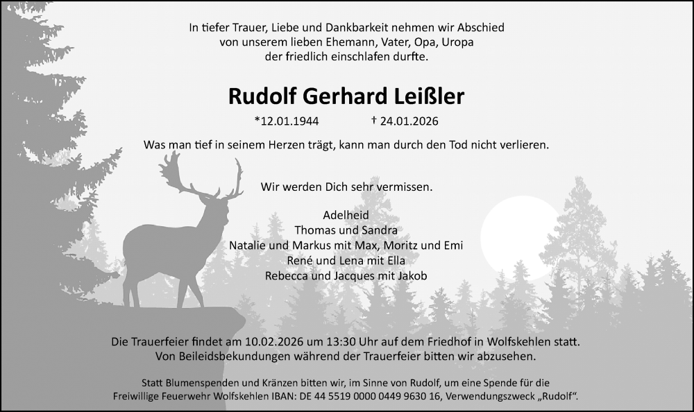 Hier finden Sie alle Traueranzeigen aus der Zeitung, die bisher für Rudolf Gerhard Leißler erschienen sind. Weitere Traueranzeigen, die in der Zeitung erscheinen, werden hier ebenfalls aufgelistet