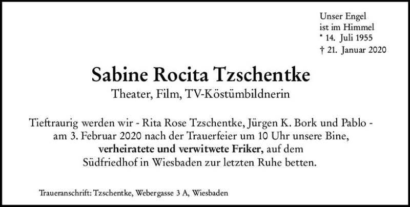 Hier finden Sie alle Traueranzeigen aus der Zeitung, die bisher für Sabine Rocita Tzschentke erschienen sind. Weitere Traueranzeigen, die in der Zeitung erscheinen, werden hier ebenfalls aufgelistet