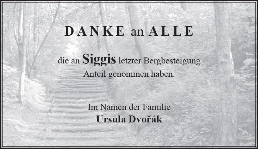 Hier finden Sie alle Traueranzeigen aus der Zeitung, die bisher für Siggi erschienen sind. Weitere Traueranzeigen, die in der Zeitung erscheinen, werden hier ebenfalls aufgelistet