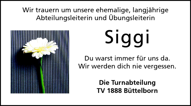 Hier finden Sie alle Traueranzeigen aus der Zeitung, die bisher für Siggi erschienen sind. Weitere Traueranzeigen, die in der Zeitung erscheinen, werden hier ebenfalls aufgelistet