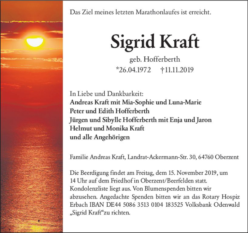 Hier finden Sie alle Traueranzeigen aus der Zeitung, die bisher für Sigrid Kraft erschienen sind. Weitere Traueranzeigen, die in der Zeitung erscheinen, werden hier ebenfalls aufgelistet