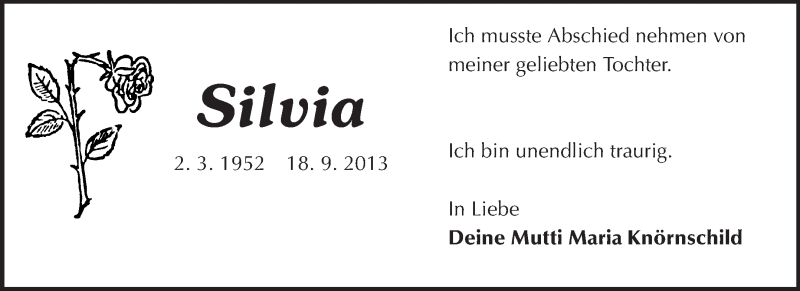 Hier finden Sie alle Traueranzeigen aus der Zeitung, die bisher für Silvia Klughardt erschienen sind. Weitere Traueranzeigen, die in der Zeitung erscheinen, werden hier ebenfalls aufgelistet