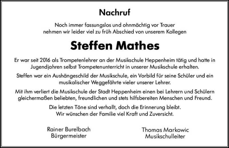 Hier finden Sie alle Traueranzeigen aus der Zeitung, die bisher für Steffen Mathes erschienen sind. Weitere Traueranzeigen, die in der Zeitung erscheinen, werden hier ebenfalls aufgelistet