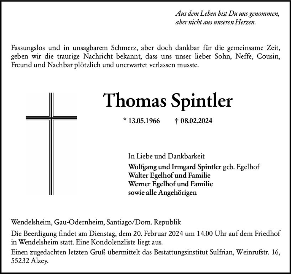 Hier finden Sie alle Traueranzeigen aus der Zeitung, die bisher für Thomas Spintler erschienen sind. Weitere Traueranzeigen, die in der Zeitung erscheinen, werden hier ebenfalls aufgelistet