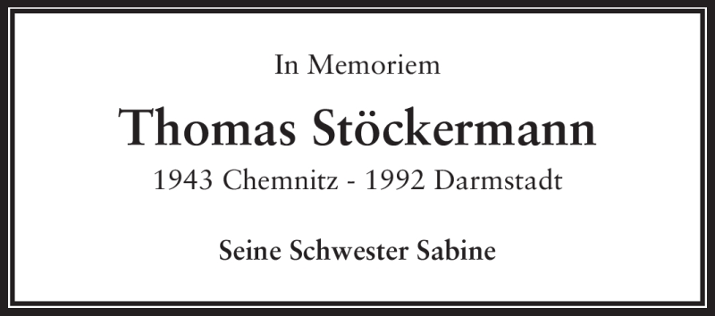 Hier finden Sie alle Traueranzeigen aus der Zeitung, die bisher für Thomas Stöckermann erschienen sind. Weitere Traueranzeigen, die in der Zeitung erscheinen, werden hier ebenfalls aufgelistet