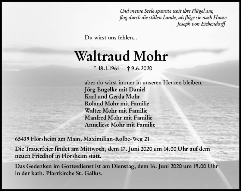 Hier finden Sie alle Traueranzeigen aus der Zeitung, die bisher für Waltraud Mohr erschienen sind. Weitere Traueranzeigen, die in der Zeitung erscheinen, werden hier ebenfalls aufgelistet