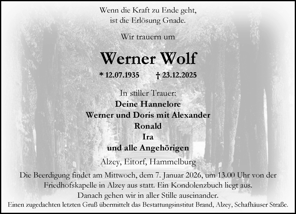 Hier finden Sie alle Traueranzeigen aus der Zeitung, die bisher für Werner Wolf erschienen sind. Weitere Traueranzeigen, die in der Zeitung erscheinen, werden hier ebenfalls aufgelistet