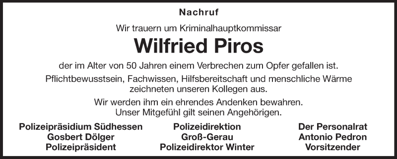 Hier finden Sie alle Traueranzeigen aus der Zeitung, die bisher für Wilfried Piros erschienen sind. Weitere Traueranzeigen, die in der Zeitung erscheinen, werden hier ebenfalls aufgelistet