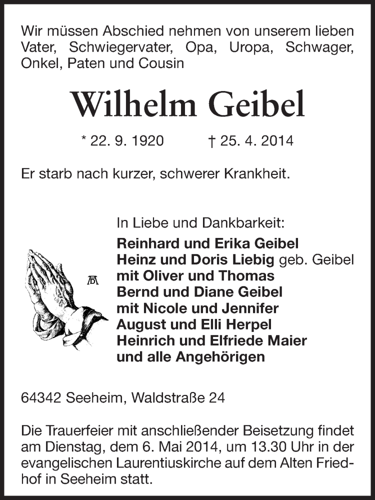 Hier finden Sie alle Traueranzeigen aus der Zeitung, die bisher für Wilhelm Geibel erschienen sind. Weitere Traueranzeigen, die in der Zeitung erscheinen, werden hier ebenfalls aufgelistet