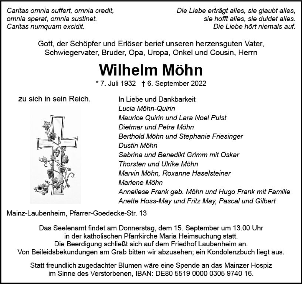 Hier finden Sie alle Traueranzeigen aus der Zeitung, die bisher für Wilhelm Möhn erschienen sind. Weitere Traueranzeigen, die in der Zeitung erscheinen, werden hier ebenfalls aufgelistet