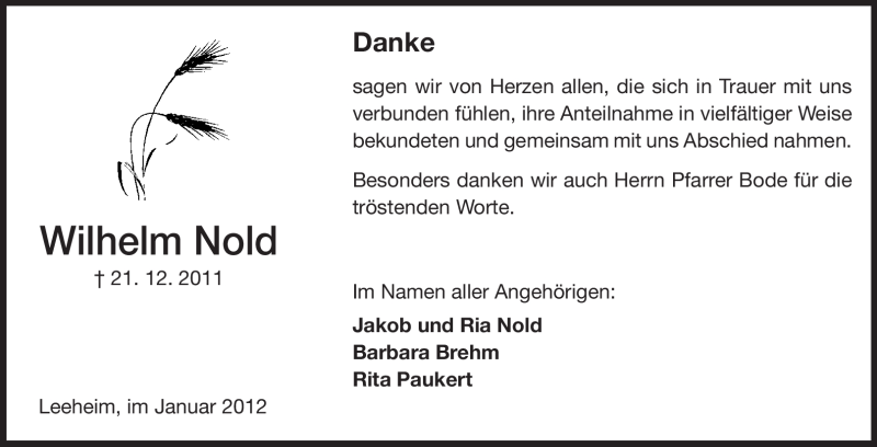 Hier finden Sie alle Traueranzeigen aus der Zeitung, die bisher für Wilhelm Nold erschienen sind. Weitere Traueranzeigen, die in der Zeitung erscheinen, werden hier ebenfalls aufgelistet