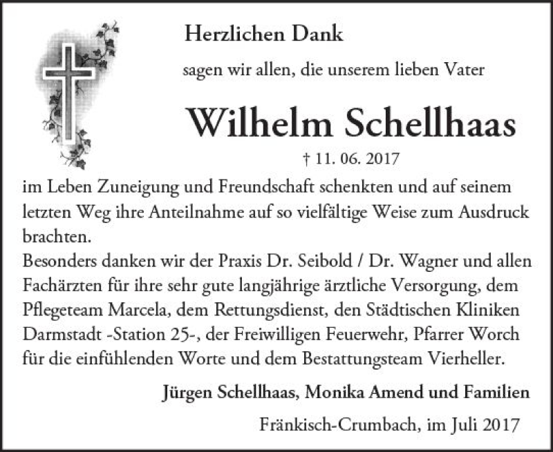 Hier finden Sie alle Traueranzeigen aus der Zeitung, die bisher für Wilhelm Schellhaas erschienen sind. Weitere Traueranzeigen, die in der Zeitung erscheinen, werden hier ebenfalls aufgelistet