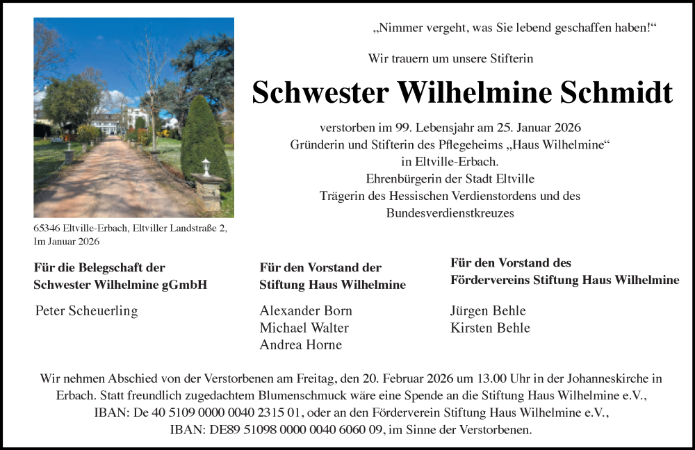 Hier finden Sie alle Traueranzeigen aus der Zeitung, die bisher für Wilhelmine Schmidt erschienen sind. Weitere Traueranzeigen, die in der Zeitung erscheinen, werden hier ebenfalls aufgelistet
