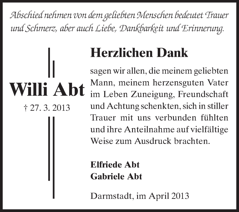 Hier finden Sie alle Traueranzeigen aus der Zeitung, die bisher für Willi Abt erschienen sind. Weitere Traueranzeigen, die in der Zeitung erscheinen, werden hier ebenfalls aufgelistet