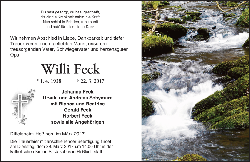 Hier finden Sie alle Traueranzeigen aus der Zeitung, die bisher für Willi Feck erschienen sind. Weitere Traueranzeigen, die in der Zeitung erscheinen, werden hier ebenfalls aufgelistet