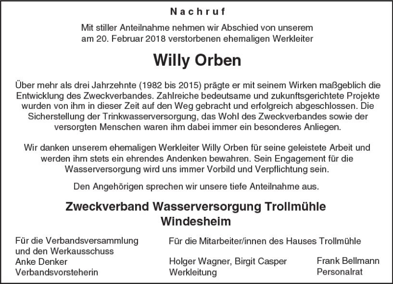 Hier finden Sie alle Traueranzeigen aus der Zeitung, die bisher für Willy Orben erschienen sind. Weitere Traueranzeigen, die in der Zeitung erscheinen, werden hier ebenfalls aufgelistet