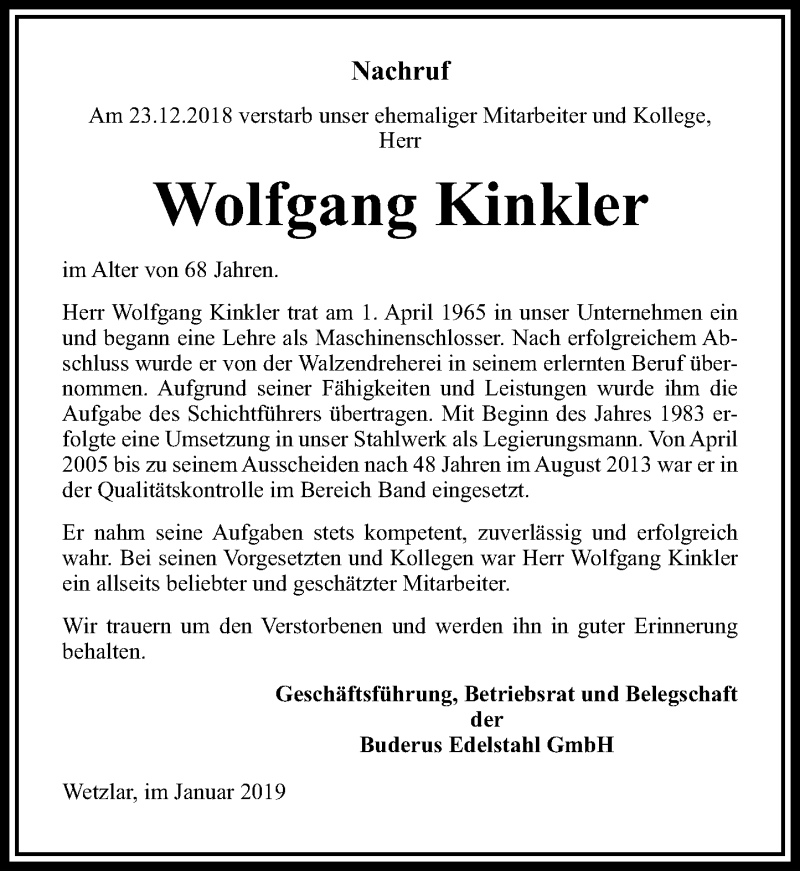 Hier finden Sie alle Traueranzeigen aus der Zeitung, die bisher für Wolfgang Kinkler erschienen sind. Weitere Traueranzeigen, die in der Zeitung erscheinen, werden hier ebenfalls aufgelistet