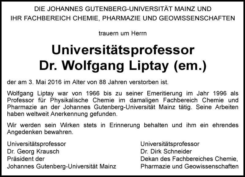 Hier finden Sie alle Traueranzeigen aus der Zeitung, die bisher für Wolfgang Liptay erschienen sind. Weitere Traueranzeigen, die in der Zeitung erscheinen, werden hier ebenfalls aufgelistet