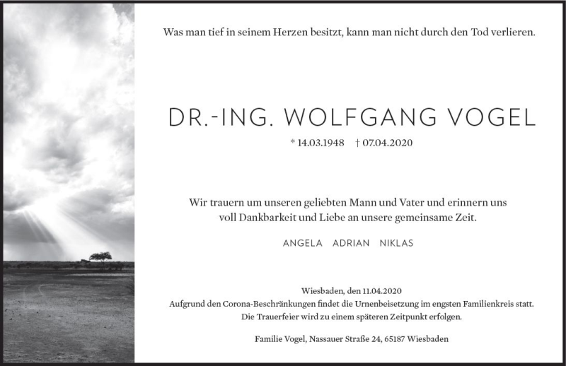 Hier finden Sie alle Traueranzeigen aus der Zeitung, die bisher für Wolfgang Vogel erschienen sind. Weitere Traueranzeigen, die in der Zeitung erscheinen, werden hier ebenfalls aufgelistet